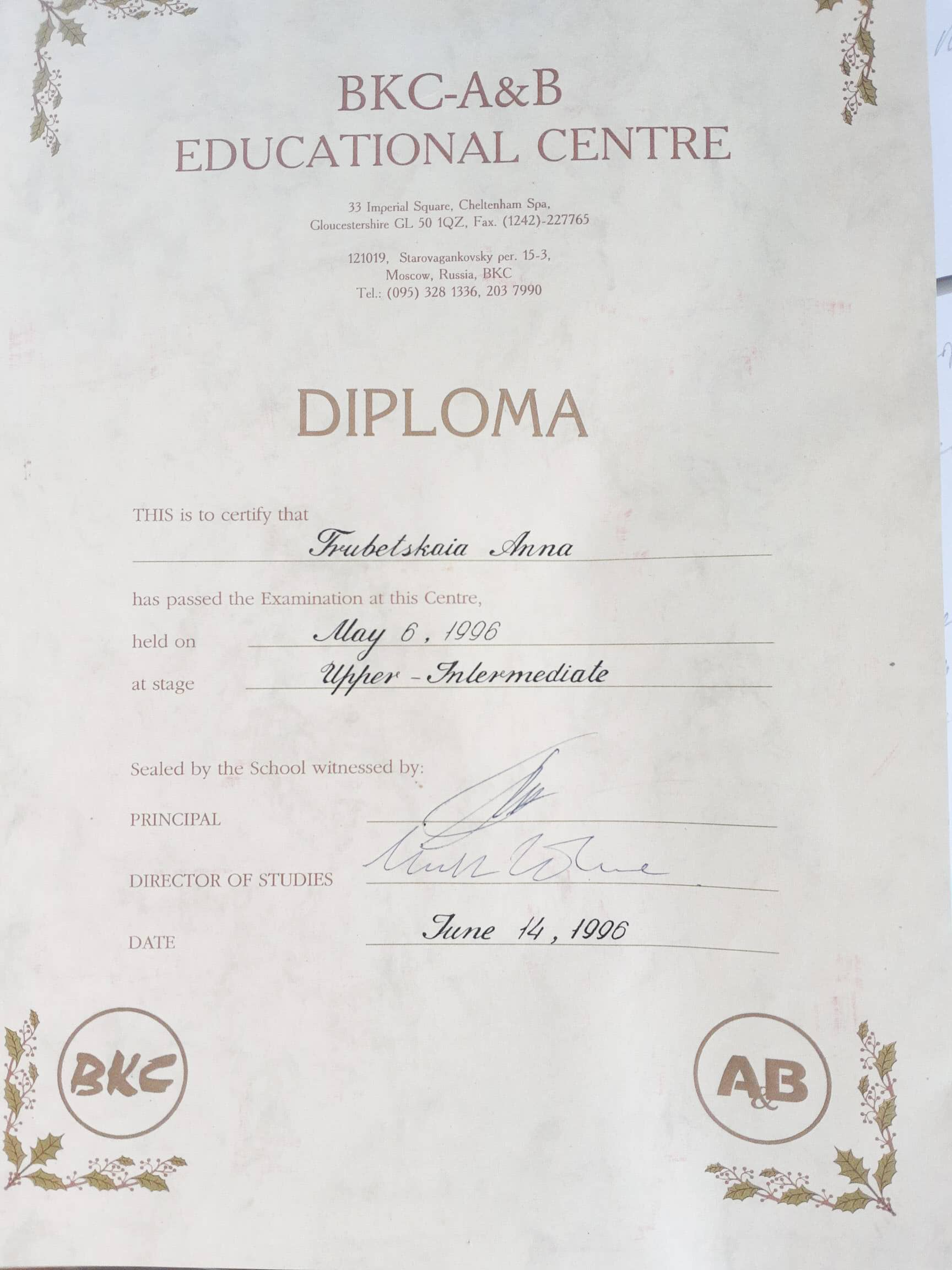 Дипломы и сертификаты об образовании
